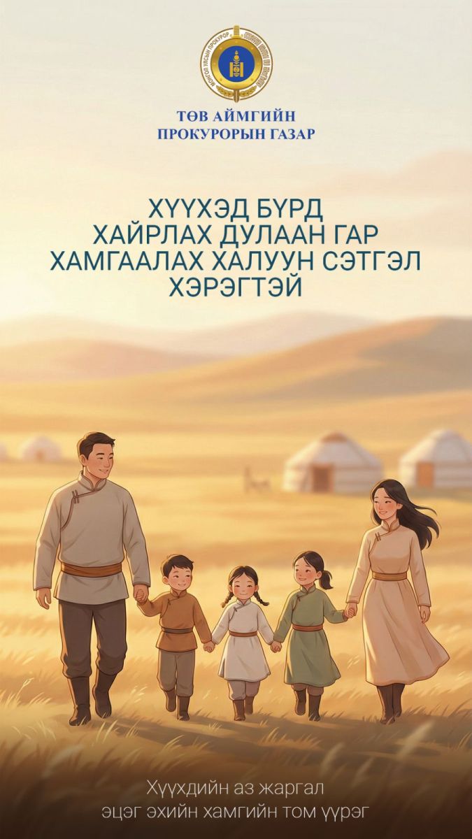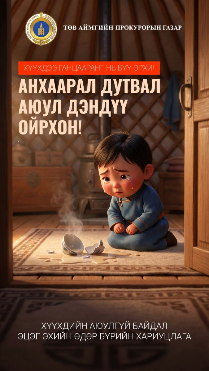Төв аймгийн прокурорын газраас хүүхдийн эсрэг гэмт хэрэг, зөрчлөөс урьдчилан сэргийлэх цуврал зурагт хуудас гаргалаа.